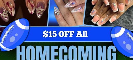 Book any nails you want and we will apply the discount when you come to your appointment and mention your homecoming.